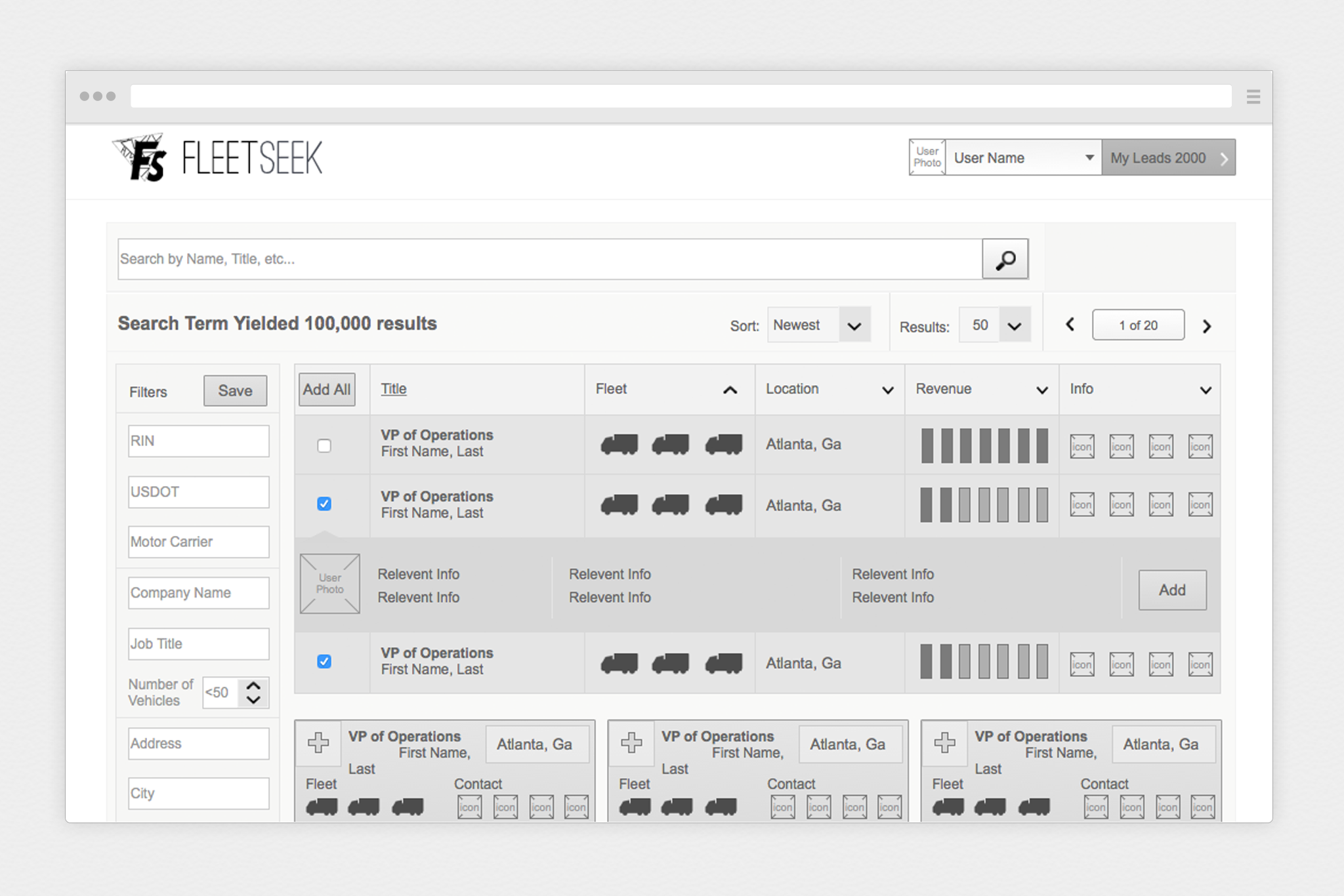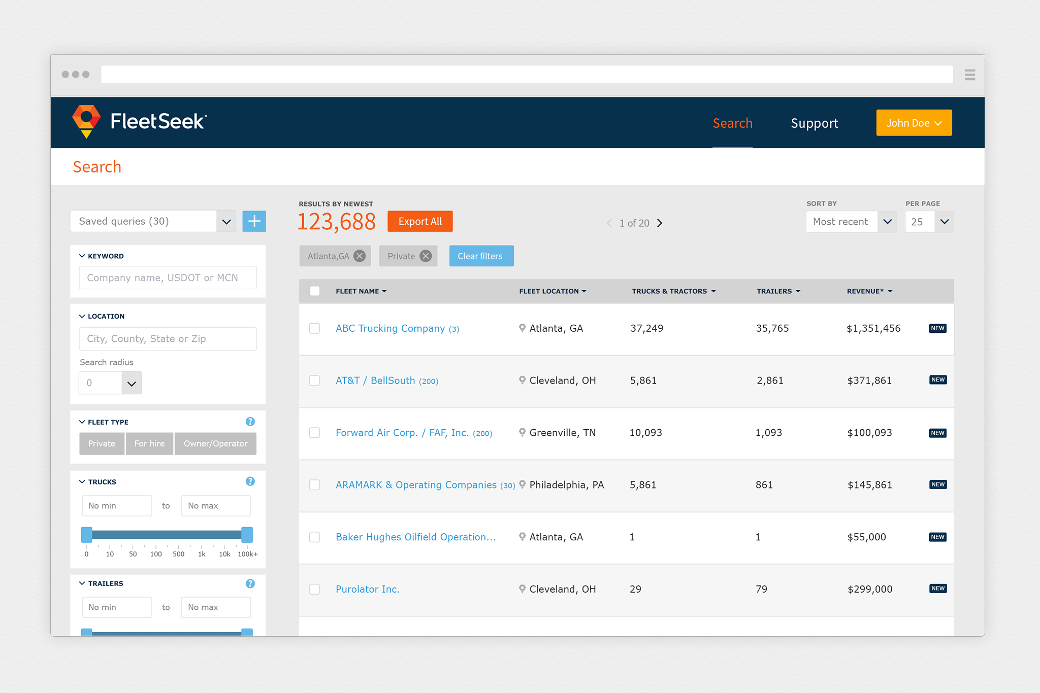 FleetSeek is a lead generation, sales and business intelligence research tool for the trucking industry that empowers its users with the ability to search over 100 data points per fleet.